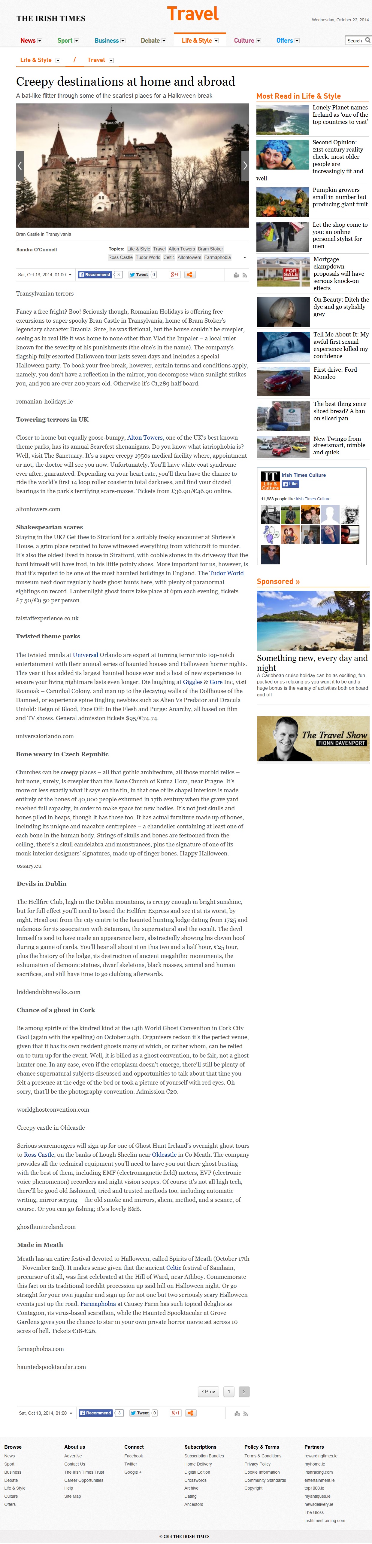 The Irish Time published the article Creepy destination at home and abroad, written by Sandra O'Connell.